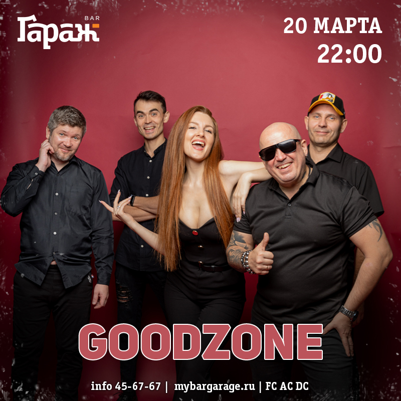 20.03.2026 — GoodZone Танцевальная пятничка с группой GoodZone! Самые любимые поп-хиты и жаркая атмосфера Гаражика. Не поропустите! Резерв Все мероприятия Скачать эту афишу