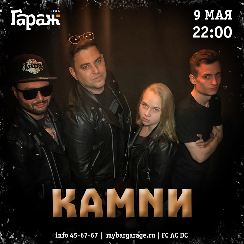 09.05.2026 — КАМNИ Победный рок-н-ролл раздают сегодня крутые ребятки из группы КАМNИ. Надо брать!) Резерв Все мероприятия Скачать эту афишу